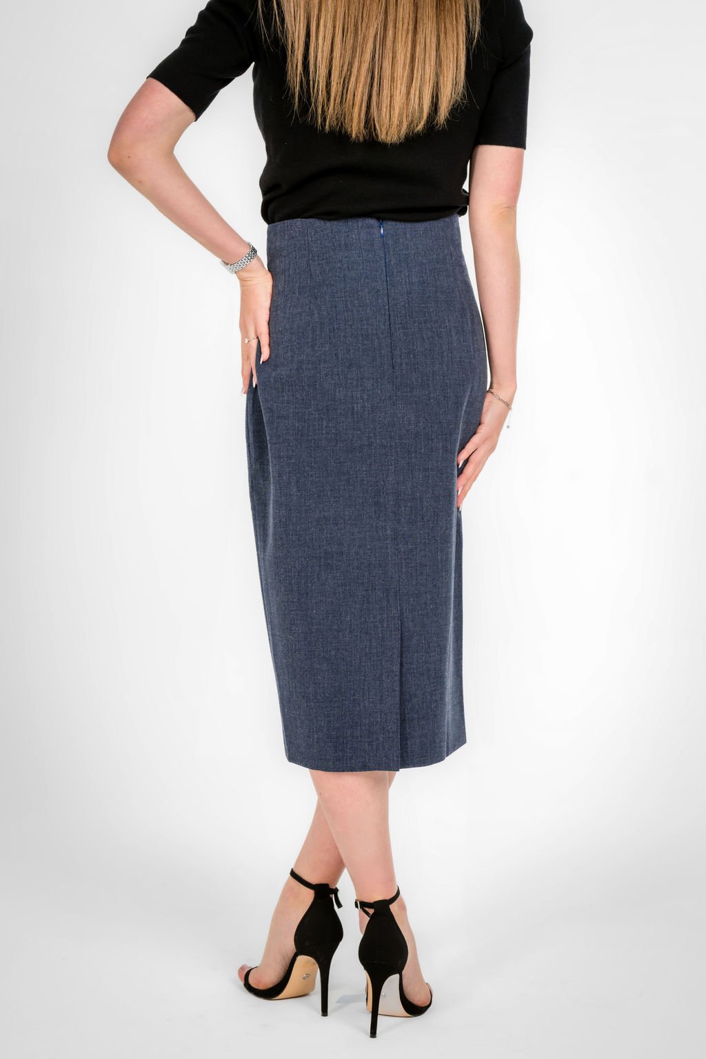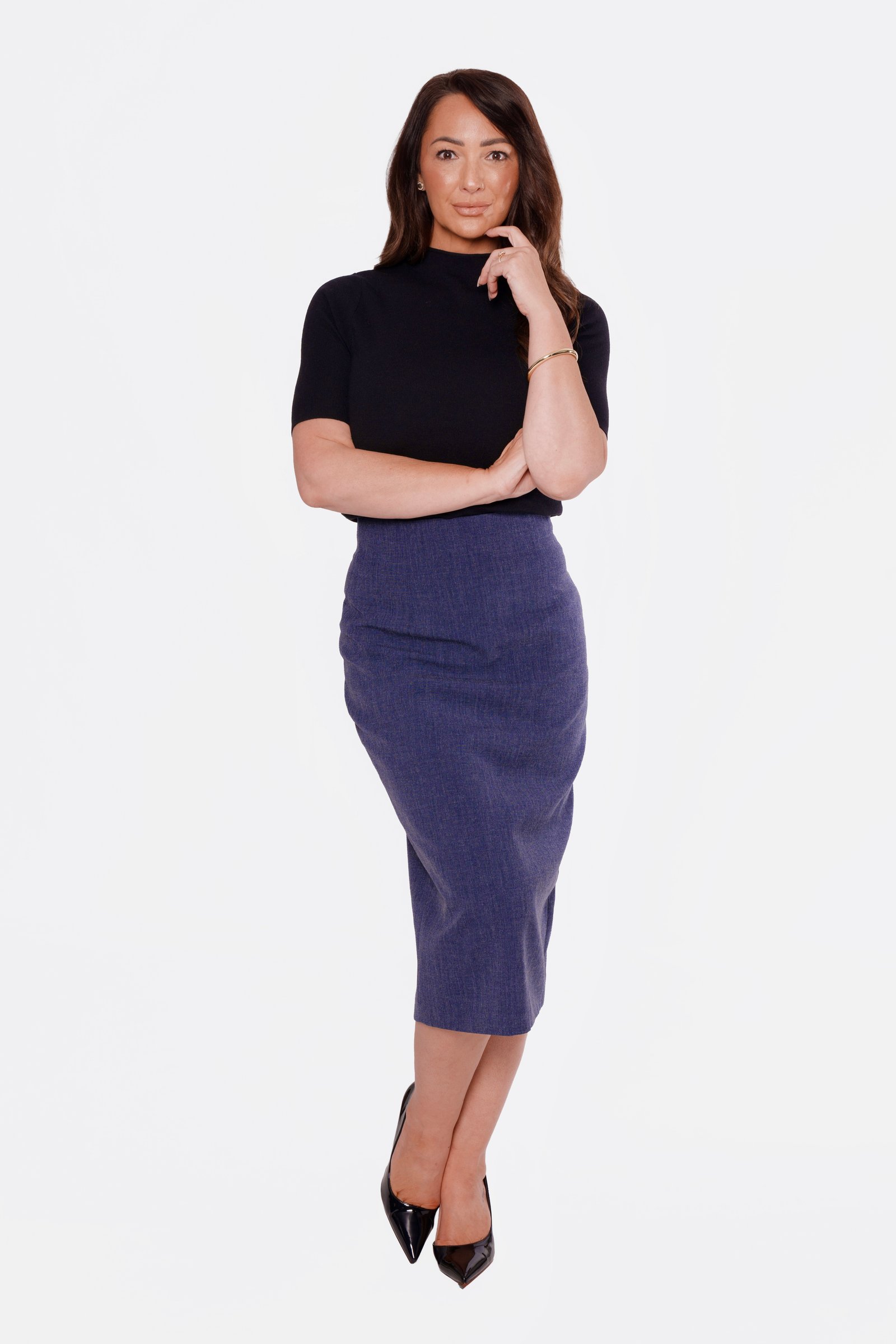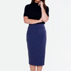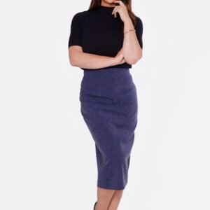 Elevate your professional wardrobe with this timeless, high-waist pencil skirt in black. Designed to accentuate the natural waistline, it offers a sleek, figure-flattering silhouette that falls gracefully to the knee. The structured fit and smooth finish create a polished look, perfect for office wear or formal occasions. Crafted from premium stretch fabric, it ensures both comfort and ease of movement throughout the day. Pair it effortlessly with a blouse or blazer for a sophisticated ensemble.