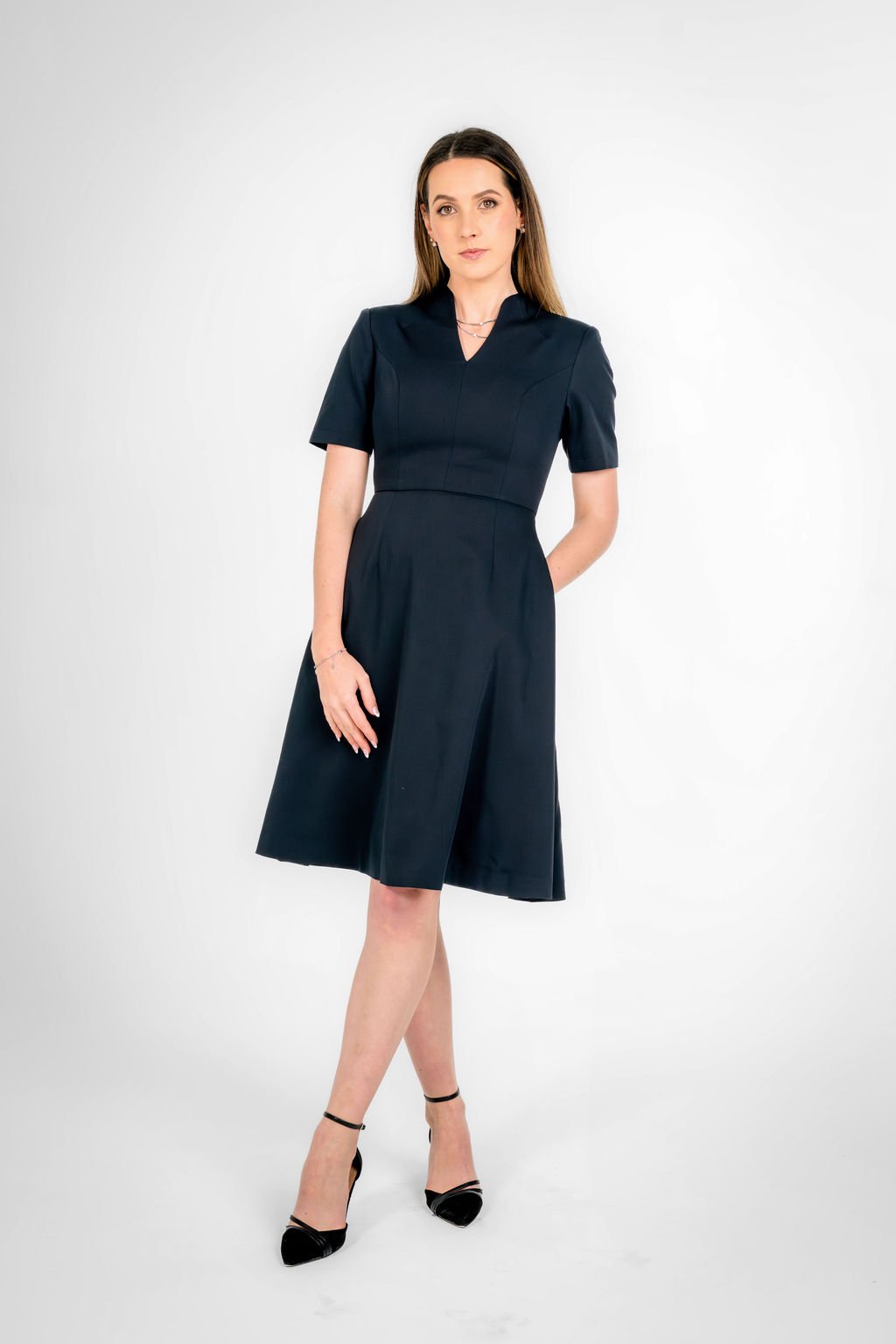 Step into refined sophistication with this flare office dress, designed to balance professionalism with modern elegance. The tailored bodice and structured waistline create a flattering silhouette, while the gentle flare from the waist offers both comfort and grace in movement.