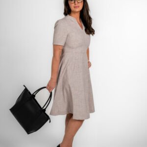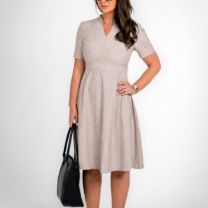Step into refined sophistication with this office dress, designed to balance professionalism with modern elegance. The tailored bodice and structured waistline create a flattering silhouette, while the gentle flare from the waist offers both comfort and grace in movement.
