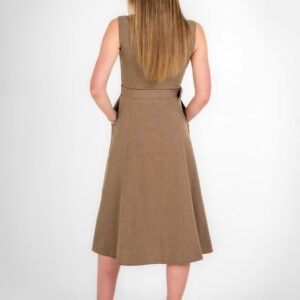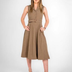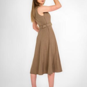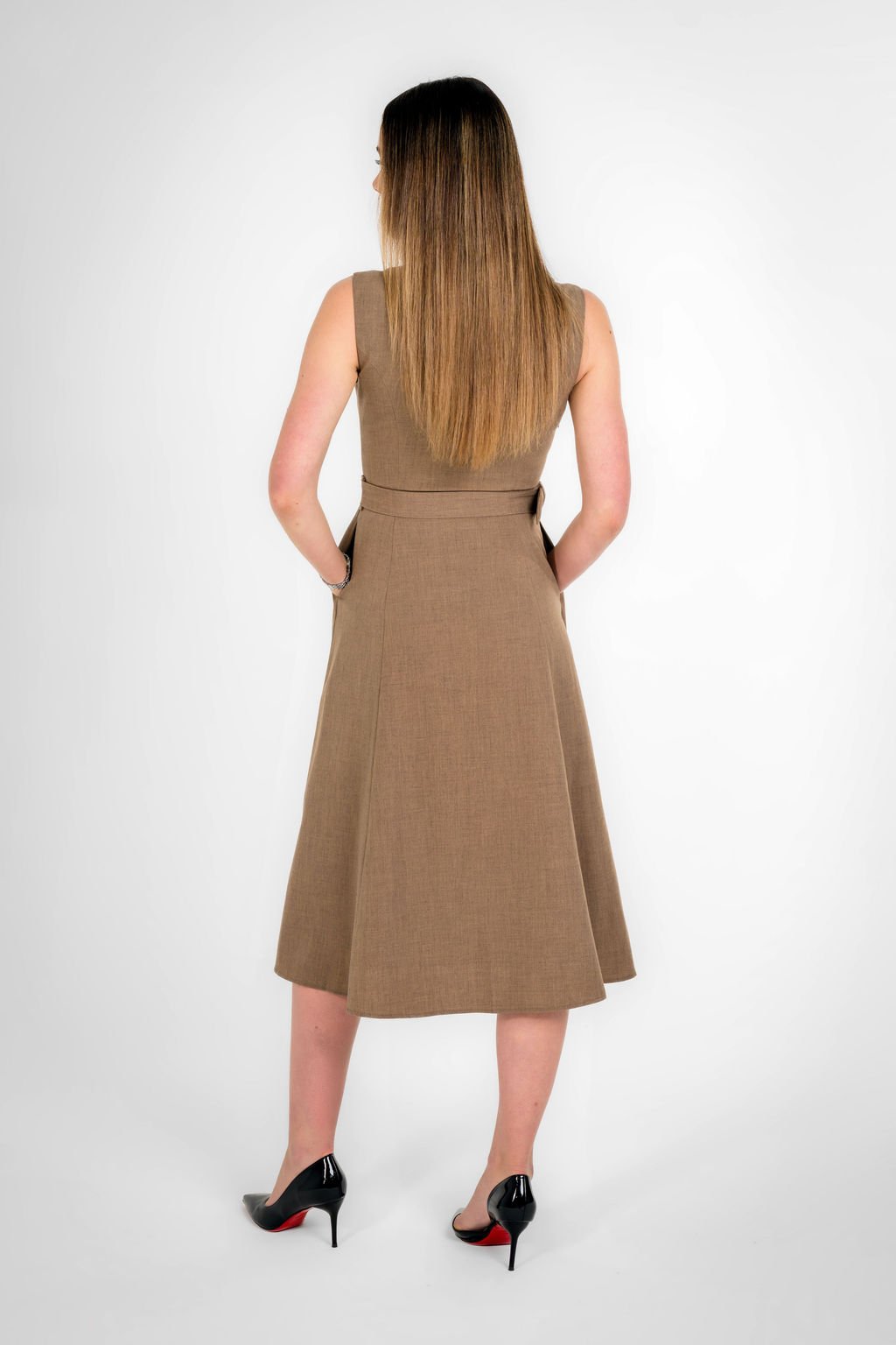 Paris Texture Brown Sleeveless Belted Midi Dress