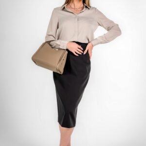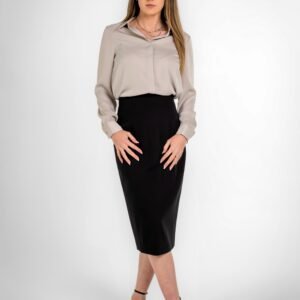 The classic collared neckline and long-sleeve design make it an ideal choice for both professional and after-hours looks. Its lightweight drape enhances comfort and movement, while the minimalist tailoring delivers a sleek, body-flattering silhouette. Whether tucked into tailored trousers or paired with a pencil skirt, this versatile shirt embodies modern femininity with an executive edge.